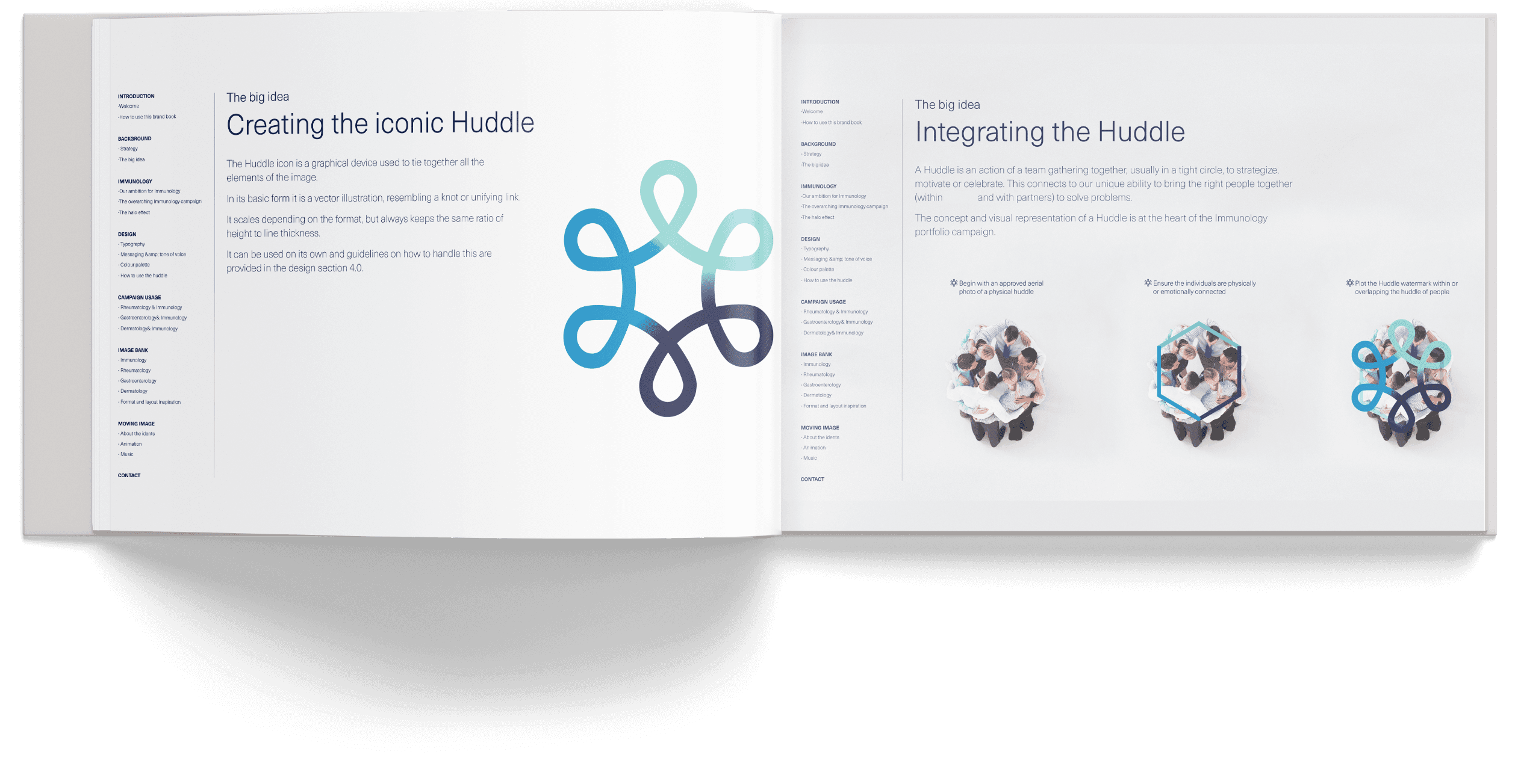 The huddle branding design and strategy came to life when the powerful representation of a dynamic, collaborative, spirited team relationship was found within a huddle.