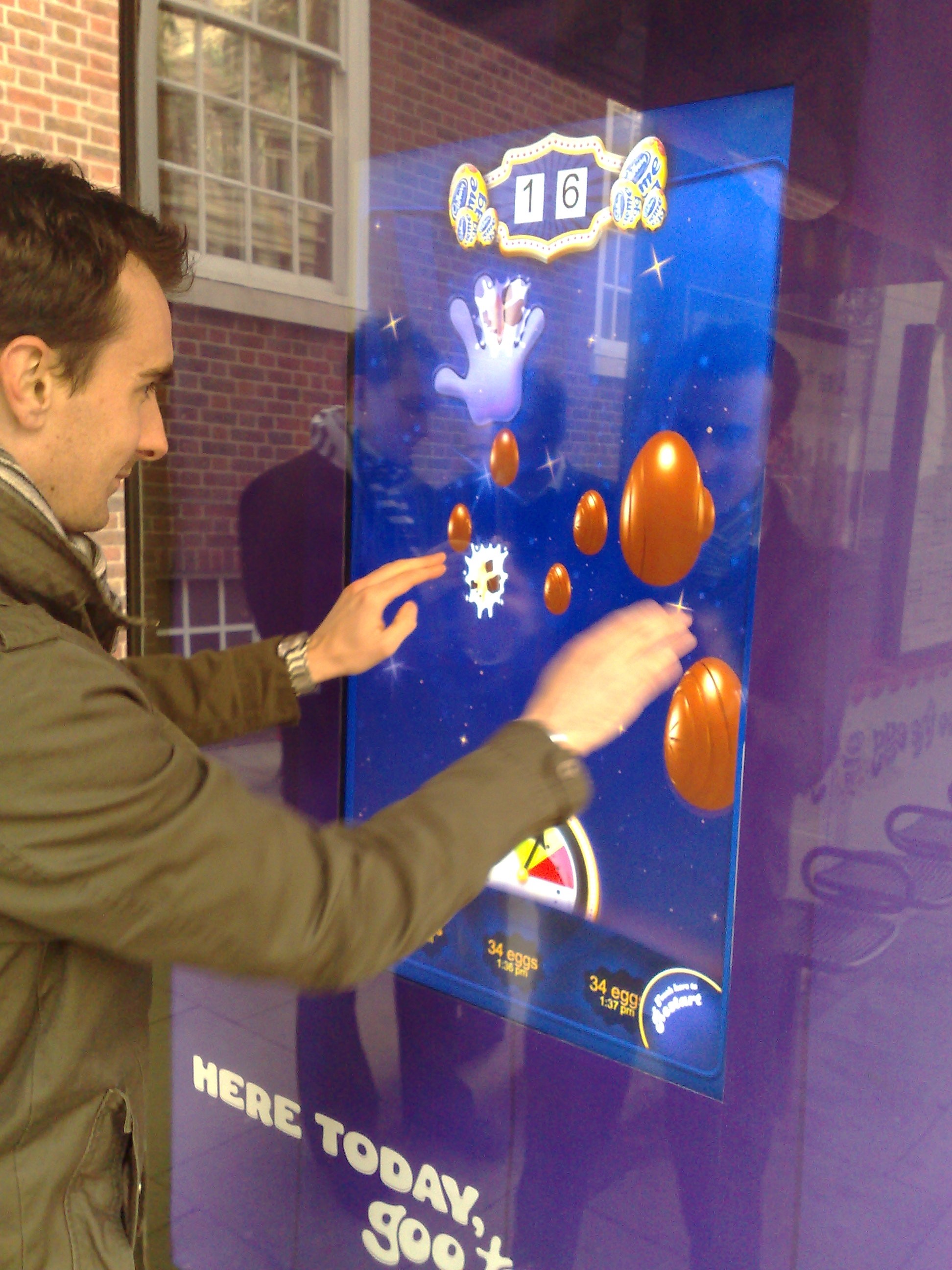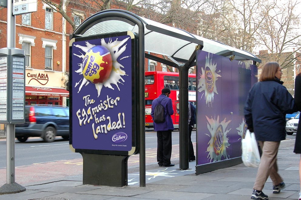 Create 20 interactive 6 sheets within bus shelters to get Creme Egg fans involved in a participative race against time and let them have some real fun with the product. The “Goo The Egg” interactive zones generated 80,000 interactions, “gooed” a million Creme eggs, and generated lots of trade and user-generated PR appearing at bus shelters in London, Birmingham, Glasgow, Manchester, Nottingham, Sheffield and York.
