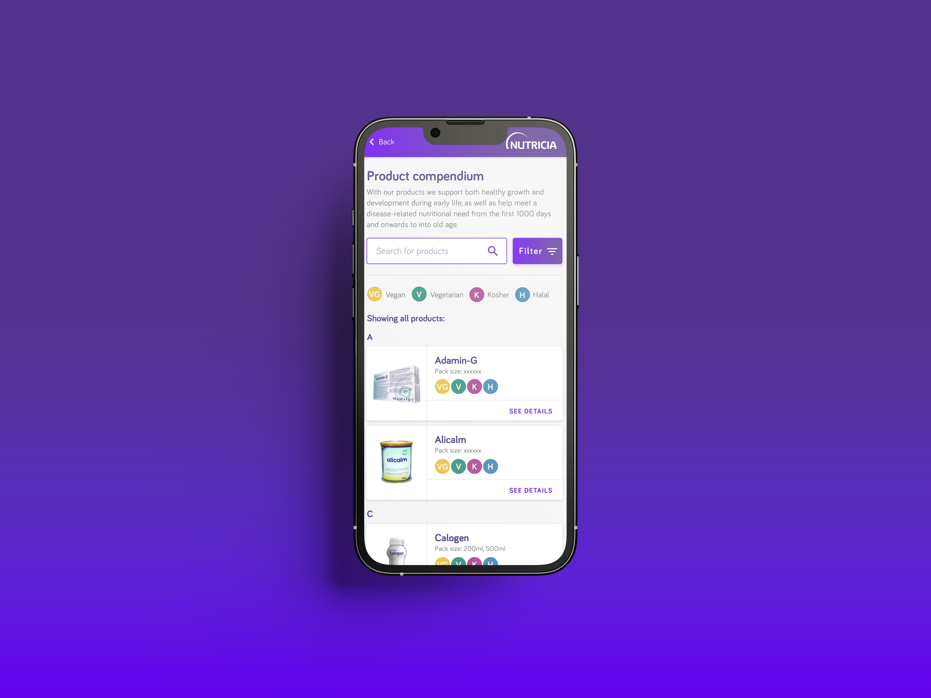 The Nutricia Dietetic App, a tool for healthcare professionals that provides information and calculations for Nutricia products